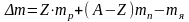 Користуючись таблицею мас ізотопів, можна пересвідчитись, що маса ядра mя менша суми мас нуклонів, з яких воно складається. Величину