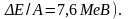 де mн – маса атома водню, ma – маса атома елемента, ядро якого розглядається. При переході до наближеної формули (7.6) нехтують малою енергією зв’язку електронів з ядром; зручність (7.6) полягає у тому, що в довідниках наводяться не маси ядер mя, а маси атомів ізотопів ma. На основі (7.4) можна пересвідчитись, що 1а.о.м. еквівалентна енергії 931,5 МеВ, тому, виражаючи квадратну дужку формули (7.6) в а.о.м., для енергії зв’язку ядра в МеВ одержують: