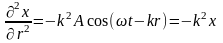 Рівняння хвилі є розв’язком диференціального рівняння, яке називають хвильовим. Знайдемо другі частинні похідні по часу t і по координаті r від функції(14.3):