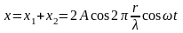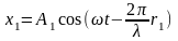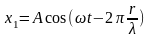 Позначимо величину, що коливається буквою x. Це може бути зміщення частинок середовища відносно положень рівноваги, відхилення тиску чи густини в даному місці середовища від рівноважного значення і т. д. Початкову фазу коливань в точці O виберемо рівною нулю; величина, що коливається, в т.O змінється за законом x=A cos t,де A-амплітуда, =