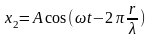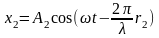 На графіку хвилі довжина хвилі - це відстань між двома найближчими точками хвилі, що коливаються в однаковій фазі. З використанням хвильового числа k рівняння плоскої хвилі набуде виду: x=Acos(t-kr) (14.3)