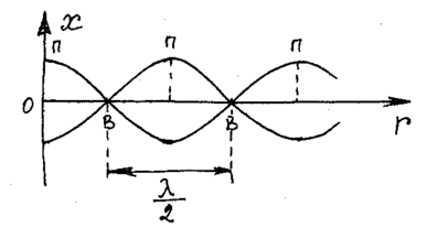 , амплітуда дорівнює нулю, тобто коливання завжди відсутні ; ці точки називають вузлами стоячої хвилі . В точках, де