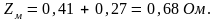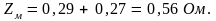 де Zм – повний опір електричної мережі, Ом;