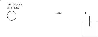 Асинхронний двигун із короткозамкненим ротором серії АИР потужністю Рн ед , кВт і напругою 0,38 кВ встановлений у виробничому приміщенні (Рис. 4.2). Електродвигун одержує живлення від трансформатора потужністю Sн т , кВА повітряною лінією довжиною l, км з проводу АС перерізом F, мм2. Відстань між проводами Dср, мм. Перевірити мережу на можливість пуску асинхронного двигуна. Дані по варіантам для розрахунку мережі наведені в таблиці 4.1.