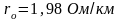 – питомий активний та індуктивний опір і-ї ділянки нульового провода, Ом/км;