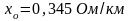 – питомий зовнішній індуктивний опір петлі фаза-нуль, Ом/км;