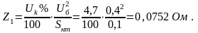 – повний опір трансформатора струму КЗ на корпус [1-3], Ом;
