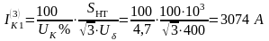 Максимальний струм трьохполюсного КЗ на шинах 0,4 кВ трансформатора визначається за виразом: