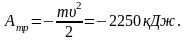 | m = 20 10 3 кг Fтр = 6 10 3 Н = 15 м/c | Решение По закону сохранения механической энергии изменение полной механической энергии будет определятся работой неконсервативных сил, то есть |