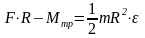 | R = 0,2 м F = 98,1 Н MТР = 4,3 Нм = 100 рад / c2 | Решение Воспользуемся основным законом динамики вращательного движения: |