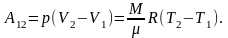 где S - площадь поршня, dV - изменение объема газа. Полная работа А12 , совершаемая газом при изменении его объема от V1 до V2