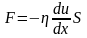 Сила F, действующая на площадь S, пропорциональна этой площади и градиенту скорости