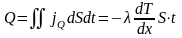 где - коэффициент теплопроводности. Знак минус показывает, что при теплопроводности энергия переносится в сторону убывания температуры. Количество тепла, переносимое в стационарном процессе теплопроводности (стационарное пространственное распределение температуры) через площадь S за время t