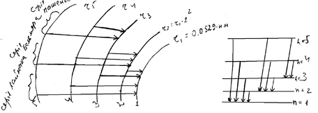 В результаті Н. Бор визначив сталу Рідберга і показав, що найменше значення енергії електрона атома водню рівне (–R). При переході електрона з одної можливої орбіти на іншу поглинається або випромінюється енергія (мал. ).