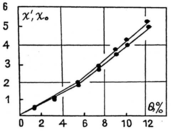 4 -6%. Увеличение внешнего постоянного магнитного поля приводит к уменьшению нелинейности концентрационной зависимости магнитной восприимчивости вплоть до его полного исчезновения при напряженности поля