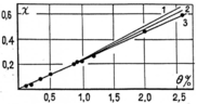 На рисунке 14 показана экспериментальная зависимость (кривая 3) магнитной восприимчивости от объемной концентрации дисперсной фазы для всего интервала исследуемых концентраций в сравнении с расчетными кривыми 1 и 2, удовлетворяющими теориям Клаузиса-Моссоти