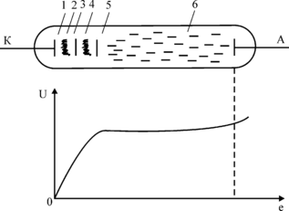 Внаслідок електронної лавинної іонізації струм самостійного газового розряду (рис.2 СД) різко зростає і його необхідно обмежувати. Для цього послідовно з газовим розрядом включають навантаження (дросель або резистор).