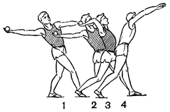 Имитируется поворачивание тела в направлении броска, и выполняются захват и "натянутый лук" (без броска) - 2 серии по 5 – 6 раз.