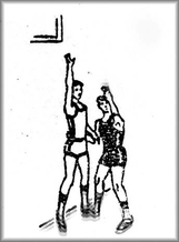 по кільцю. Допускаються обманні дії, але виключається ведення м'яча. Захисник намагається блокувати кидок суперника, не порушуючи правил гри.