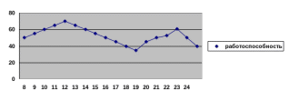 Рис. 1. Работоспособность студента в процессе учебно-трудового дня
