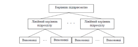 Лінійна організаційна структура характеризується тим, що всі функції управління зосереджені в лінійних ланках – кожний працівник підпорядковується одному керівнику і одержує вказівки тільки від нього. Це виключає отримання підлеглими суперечливих і не зв'язаних між собою розпоряджень, підвищує відповідальність керівників за результати роботи свого підрозділу. При цьому керівник кожної ланки відповідає за весь об'єм роботи увіреного йому підрозділу. У зв'язку з цим керівник підрозділу в лінійній організаційній структурі повинен бути висококваліфікованим і компетентним у всіх питаннях, що стосуються безпосередньої діяльності підрозділу, яким він керує.