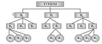 З наведеної схеми ясно, що на першому рівні стоять ознаки, за якими здійснюється групування конкретних різновидів туризму, на другому – основні види, а на третьому – форми туризму.