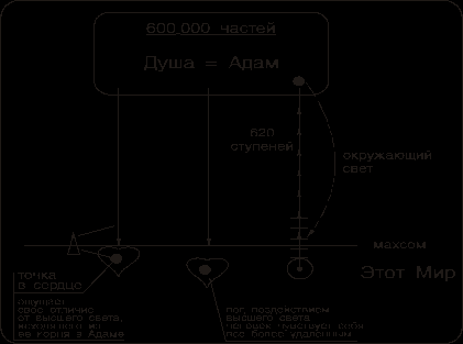 Нисхождение души создает в ней огромный отрицательный потенциал. Душа нисходит с совершенного уровня в наш мир, вплоть до самого неисправленного состояния, приобретая отрицательные свойства. Это происходит не по ее воле, а вследствие падения в наш мир. Душа падает с высоты 620 ступеней: по ним она спускается вниз, теряя свои духовные свойства на каждой ступени.