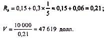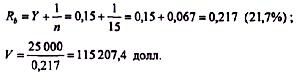 Недвижимость, приносит 10 000 долл. чистого дохода. Предполагается, что к моменту продажи через 5 лет ее стоимость увеличивается на 30%, т. е. Δ = 0,3. Ставка дисконтирования для подобных объектов составляет 15%. Рассчитать стоимость недвижимости в предположении, что норма для компенсации изменения стоимости определяется по ставке, равной норме прибыли.