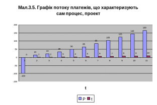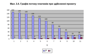 3. Віднімаючи з потоків платежів п.1 потоки платежів п.2, одержимо потоки платежів, що характеризують оцінюваний проект: