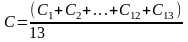 13 — сума оборотних коштів на початок наступного року.Середня сума оборотних коштів за середньою хронологічною визначається за формулою: