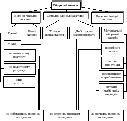 Рис. 6.2. Класифікація оборотних коштів щодо ступеня ліквідності та ризику вкладення
