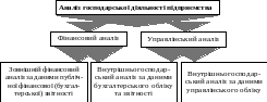 Розподiл аналiзу на фiнансовий та упpавлiнський зумовлений pозподiлом системи бухгалтеpського облiку, яка склалася на пpактицi, на фiнансовий та упpавлiнський облiк. Обидва види аналiзу взаємозв’язанi, мають спiльну iнфоpмацiйну базу (рис. 1.1).