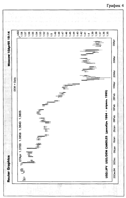 На графике 4 приведен пример движения курса доллара к марке за несколько месяцев с использованием японских свечек.