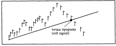 Точка прорыва для подтвержденной смены восходящего тренда образует сигнал к продаже (sell signal); подтвержденная смена нисходящего тренда образует сигнал к покупке (buy signal).