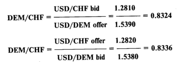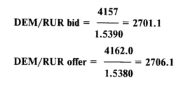 GBP/DEM offer = GBP/USD offer x USD/DEM offer = = 1.5725 x 1.5385 = 2.4193