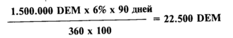 1.5 млн. немецких марок, инвестированные в 3-месячный депозит под 6%, принесут компании процентный доход, равный 22.500 немецких марок: