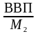 Так как денежная масса в обороте характеризуется величиной денежного агрегата М2, то количество оборотов рассчитывается по формуле: