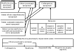 На рис. 1.2 наведено структурно-логічну схему формування прибутку від реалізації продукції, а також названо основні показники, що впливають на прибуток від реалізації.