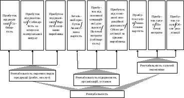 На рис. 1.4 наведено класифікацію показників рентабельності. Обчислення рентабельності окремих видів продукції (робіт, послуг) може грунтуватися на показниках прибутку від їх випуску або реалізації. При цьому поточні витрати можуть братися в таких варіантах: собівартість продукції (виробнича); собівартість продукції за виключенням матеріальних витрат (заново створена вартість); вартість продукції в цінах виробника (вартість за мінусом непрямих податків).