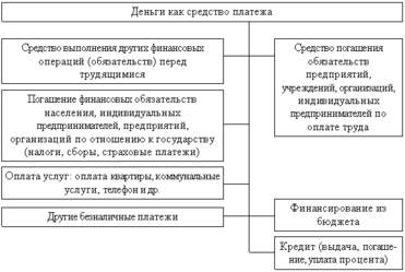 Возникновение функции денег как средства платежа связано с более высоким этапом развития товарного производства – когда акты продажи и купли товаров разделились во времени и пространстве. Так, при продаже товаров в кредит, то есть с отсрочкой платежа, деньги используются как мера стоимости при установлении цены товаров, но не используются как средство обращения; они необходимы покупателю как средство погашения его долгового обязательства после наступления срока платежа. В процессе движения товаров деньги не противостоят им непосредственно, а поступают в оборот лишь через определенное время. При продаже товаров в кредит сначала реально происходит движение потребительной стоимости, а стоимость товара получает идеальное выражение в долговом обязательстве; реальное движение стоимости происходит лишь при погашении кредита. В этом случае деньги не опосредствуют движение товаров, а завершают процесс обмена, осуществляя относительно самостоятельное движение.