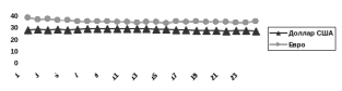 Динамика ежемесячных курсов доллара США и евро к рублю РФ,