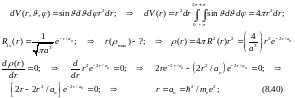 Уравнение Шрёдингера для электрона в атоме водорода. Разделение переменных. Радиальная и угловая части уравнения Шрёдингера и вид общего решения. Квантование модуля и проекций момента импульса электронного вращения вокруг ядра. Квантование энергии и энергетические уровни. Пределы изменения квантовых чисел. Боровский радиус и его вероятностный смысл.