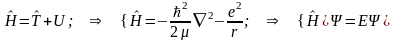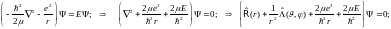 Одноэлектронный гамильтониан в шаровых координатах и уравнение Шрёдингера для атома водорода (или водородоподобного иона). Разделение переменных. Атомные орбитали, их радиальные и угловые компоненты: