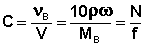 Молярная концентрация С – число молей νВ растворенного вещества в одном литре раствора.