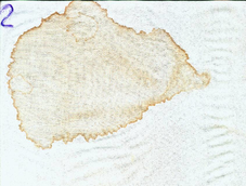 На куски белой ткани, размером 20×20 см, были нанесены пятна крови, кетчупа, оливкового масла, паста от шариковой ручки. По прошествии 24 часов после нанесения пятен образцы были испытаны на действие порошка по следующей методике. 1 столовая ложка порошка (20 мл) растворялась в 0,5 л кипятка. В полученную смесь опускался испытуемый образец, который интенсивно перемешивался в полученном растворе течение 5 минут. По окончании данной процедуры образец полоскался в проточной воде в течение 1 минуты.