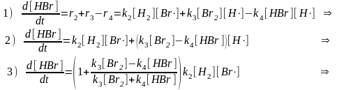 | 3 | H | + Br2 | Br | + HBr | | | r3=k3[Br2][H] | Продолжение | +40.5 | ||||||||
