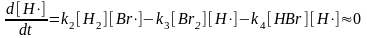 | 4 | H | + HBr | Br | + H2 | | | r4=k4[HBr][H] | +16.0 | |||||||||