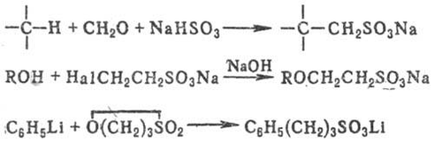 К косвенным методам С. относят сульфометилирование, сульфоэтилирование и т.д., напр.: