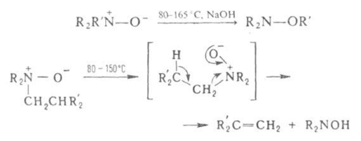 При нагр. алифатич. А. о. образуют замещенные гидроксиламины (перегруппировка Майзенхаймера) или олефины (перегруппировка Коупа), напр.: