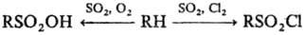 Прямое С. алканов протекает с трудом и сопровождается, как правило, окислением. Подобные р-ции редко используют для препаративных целей, но находят им практич. применение для С. полимеров, напр. полиэтилена, с целью их модификации. Значительно легче сульфируются углеводороды при совместном действии SO2 и О2 (сульфо-окисление), а также SO2 и Сl2 (сульфохлорирование). Обе р-ции имеют радикальный характер и инициируются пе-роксидами, УФ или g‑облучением: